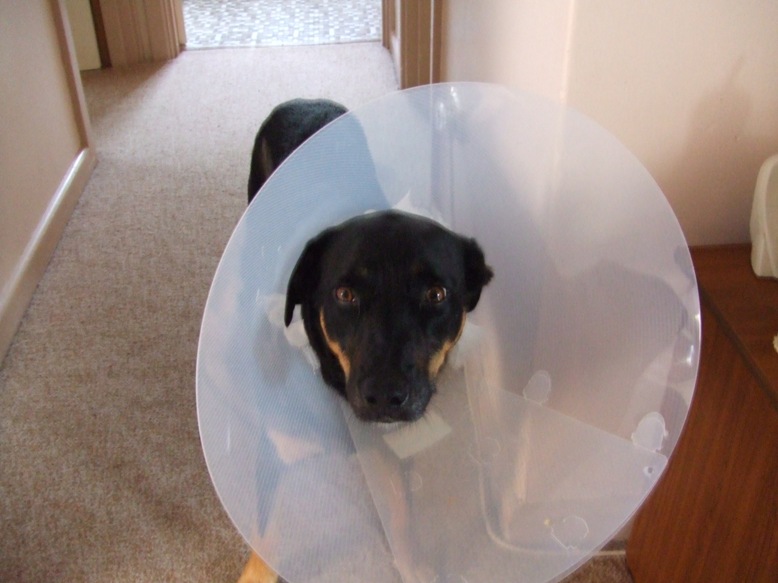 and make him wear a collar as he had already started to attack the stitches when