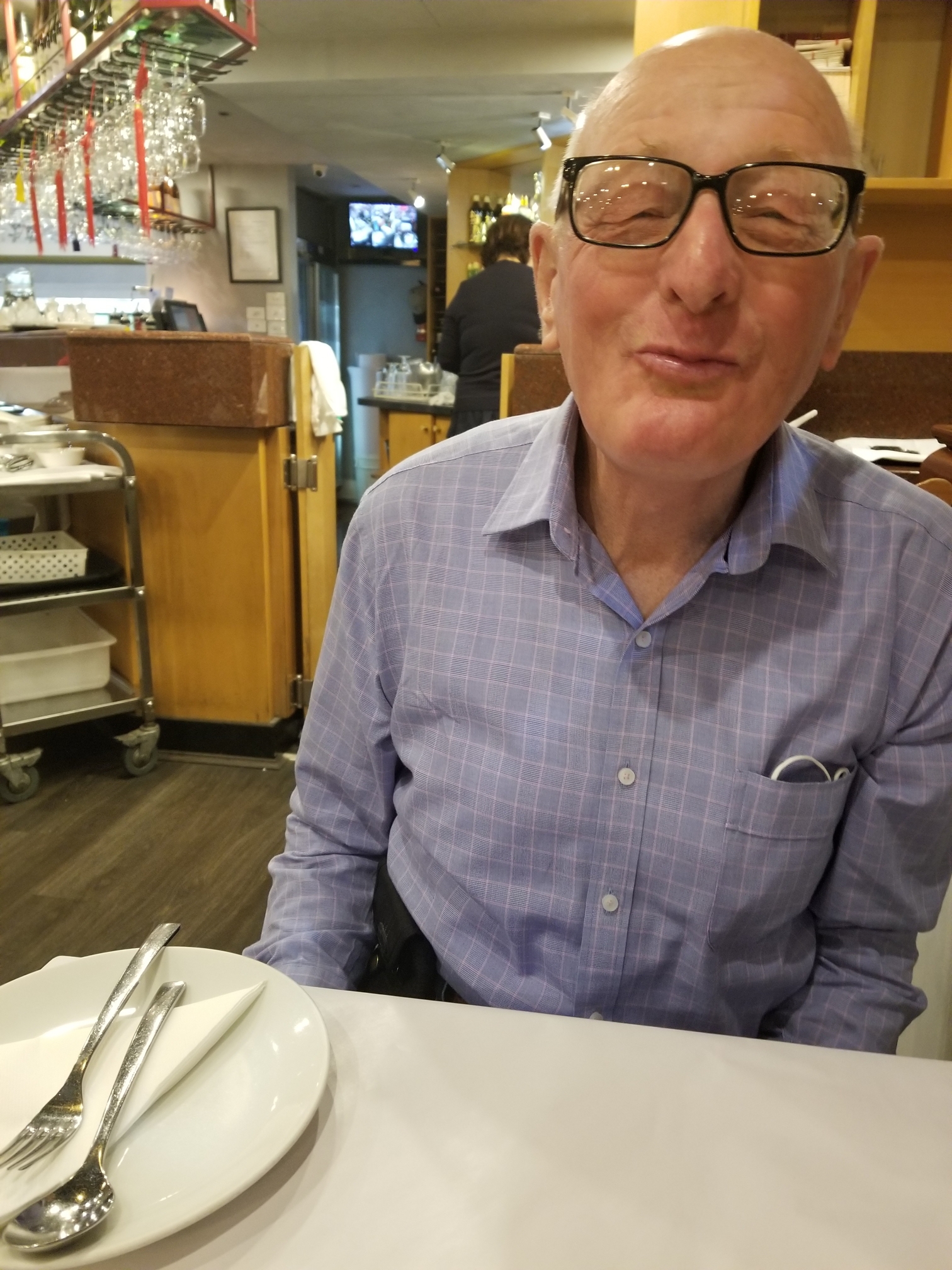 A wash and brush up and a trip to Bourke street by me on the tram to buy Nuran's birthday gift at David Jones all goals duly accomplished it was another trip on the tram to Little Bourke St and tea at a more down market Chinese restaurant than our celebratory dinner. It was still a lovely meal and here we are being happy together.
