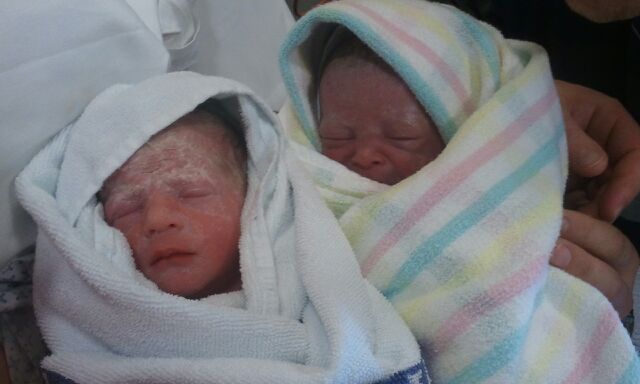 Born 11th September within 15 minutes of each other , Mum is a quick labourer indeed.